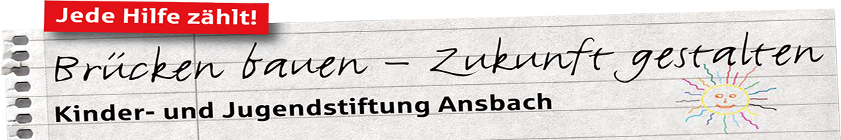 über Ihr Interesse für die Arbeit der Kinder- und Jugendstiftung Ansbach freuen wir uns sehr. Seit der Gründung 2011 macht sich unsere Stiftung insbesondere für junge Menschen in Ansbach und Umgebung stark, die es deutlich schwerer als andere haben, einen Platz in der Gesellschaft zu finden. Unsere Stiftung möchte Kindern und Jugendlichen „Brücken bauen“, positiv ihre „Zukunft zu gestalten“. Dafür setzen wir uns ein. Welche Projekte wir bislang in Angriff genommen haben und welche wir aktuell fördern, das können Sie unserer Internetseite entnehmen.